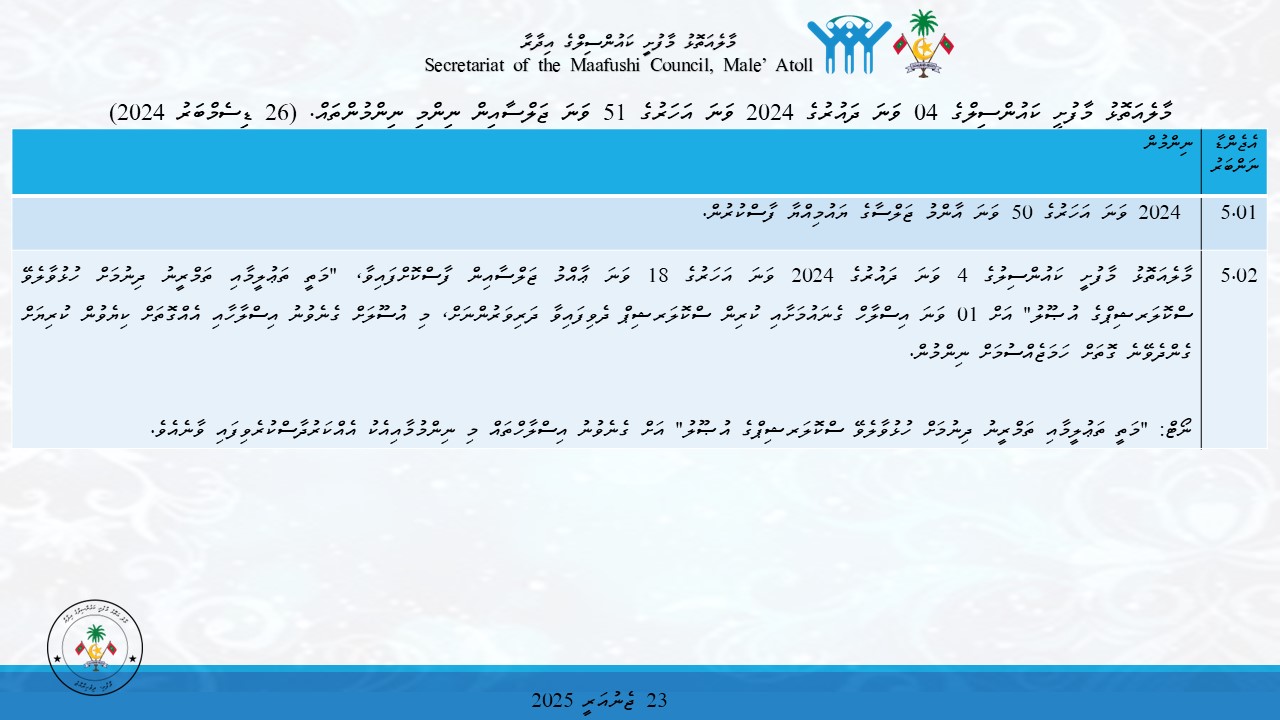04 ވަނަ ދައުރުގެ 2024 ވަނަ އަހަރުގެ 51 ވަނަ ޖަލްސާއިން ނިންމި ނިންމުންތައް